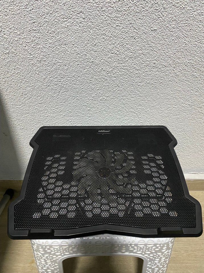 Siyah renkli, ızgaralı yüzeye ve sağlam çerçeveye sahip laptop soğutucu fan, etkili ısı dağıtımı sağlar. ️
