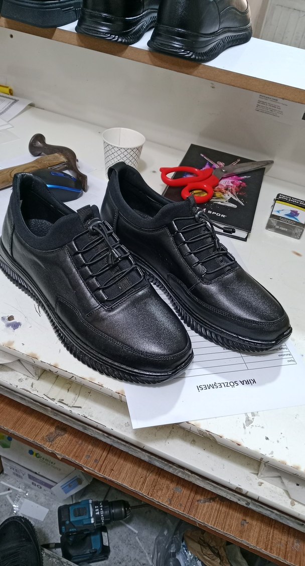 Siyah Lastik Bağcıklı Erkek Günlük Ayakkabı
