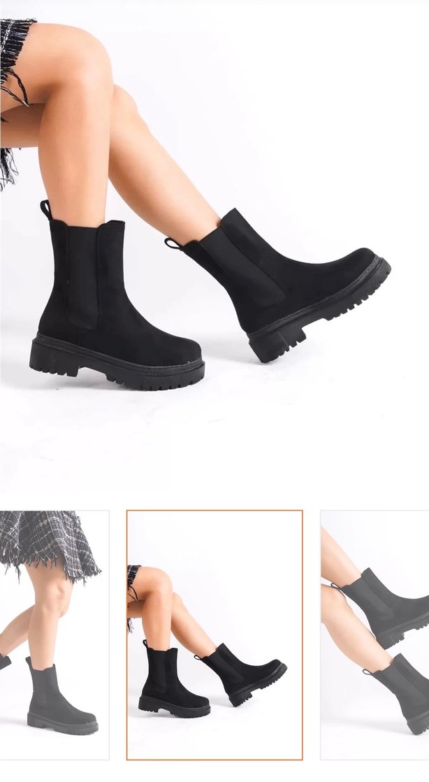 Siyah lastikli, blok topuklu kadın botları, günlük kullanım ve rahat sokak stili için uygundur.