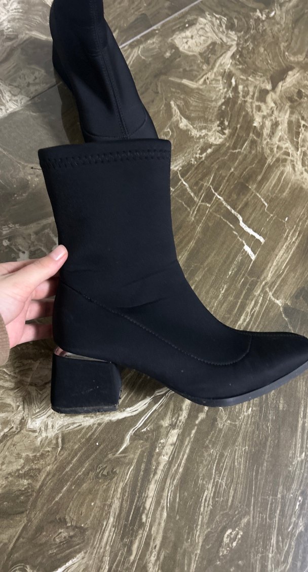 Siyah Lastikli Blok Topuklu Kadın Bot