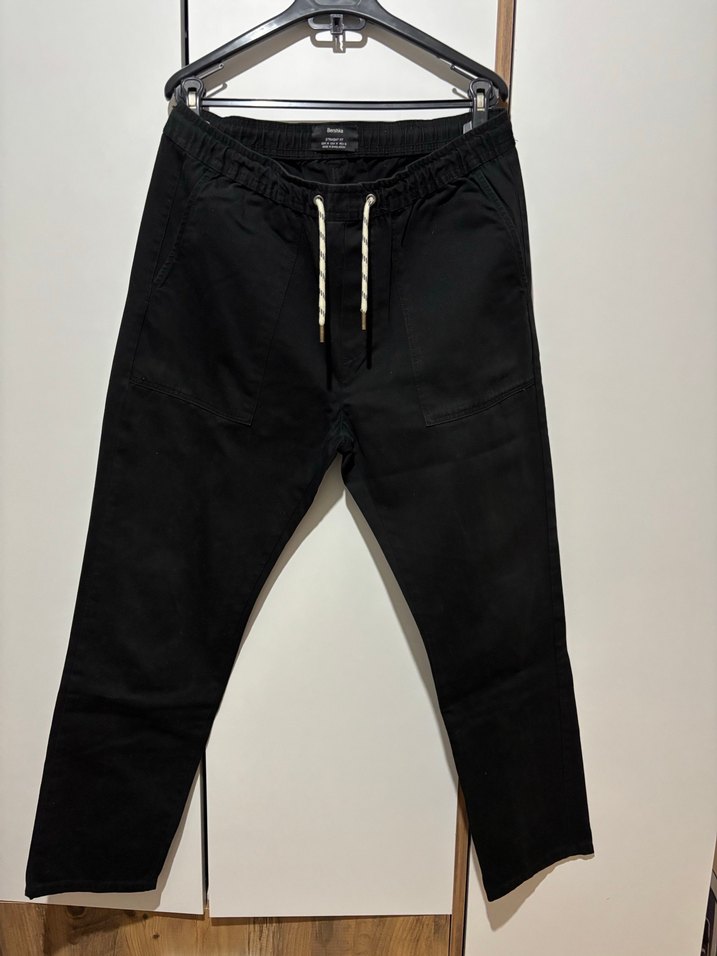 Siyah renkli, lastikli bel , bol kesim erkek pantolon. Günlük sokak stili için rahat ve şık bir tercih.