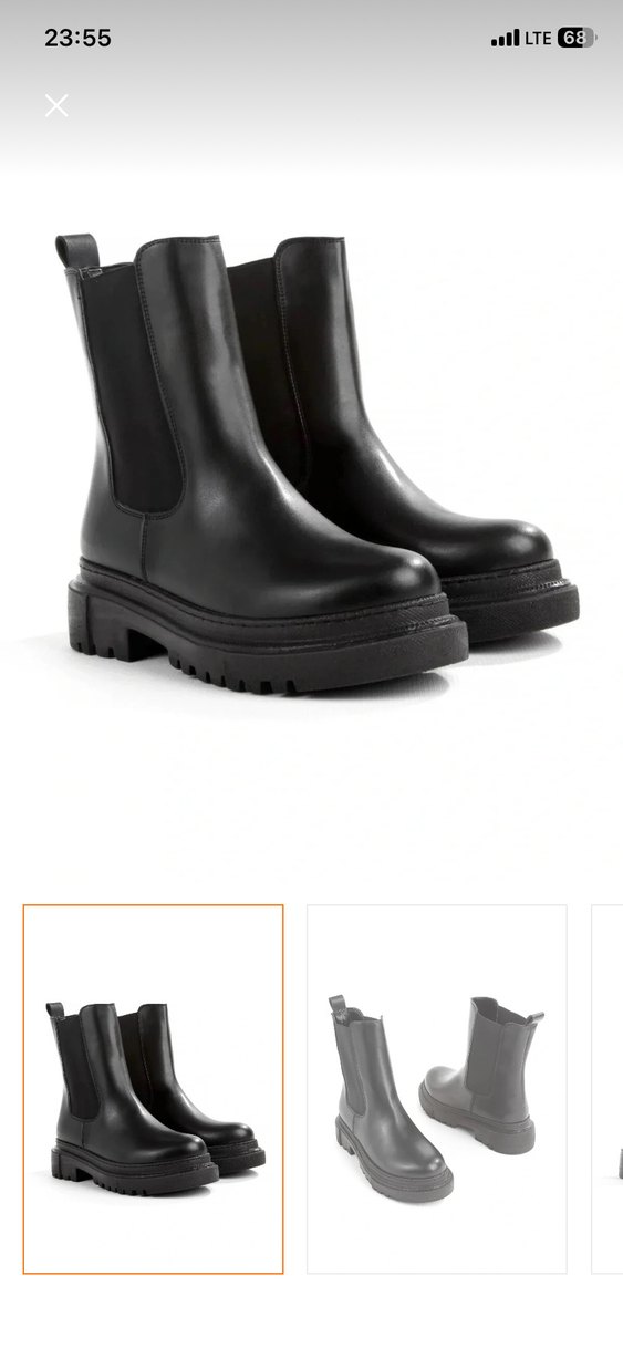 Siyah lastik malzemeden blok topuklu, tokalı kadın botlarıdır. Minimalist goth tarzında, düz ve desensiz tasarıma sahiptir, günlük kullanıma uygundur.
