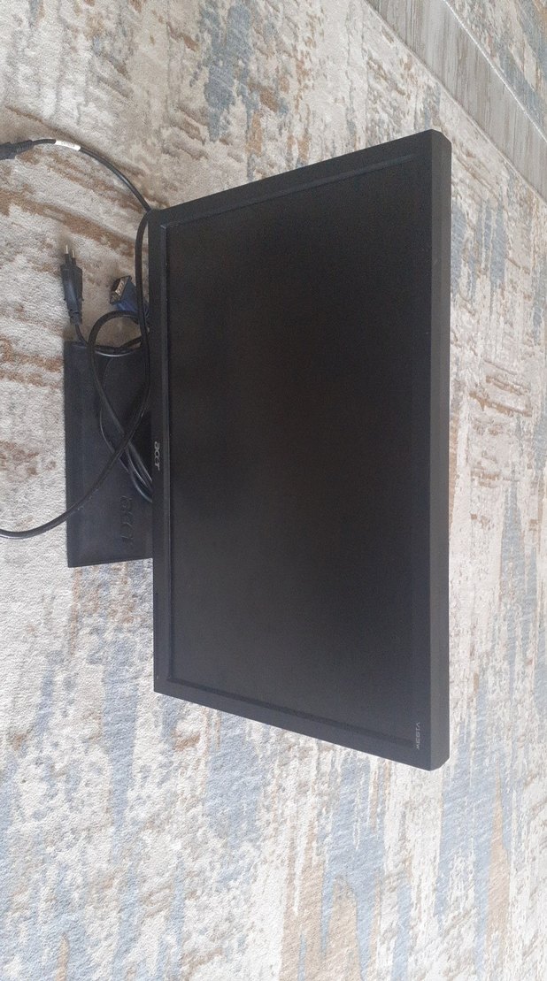Siyah renkli, ince tasarımlı ve sağlam tabanlı monitör. Gerekli kablolarla birlikte gelir.(çok küçük bir ekran bozulması vardır belli bile olmuyor,pazarlık yapılabilir takas yapılabilir.