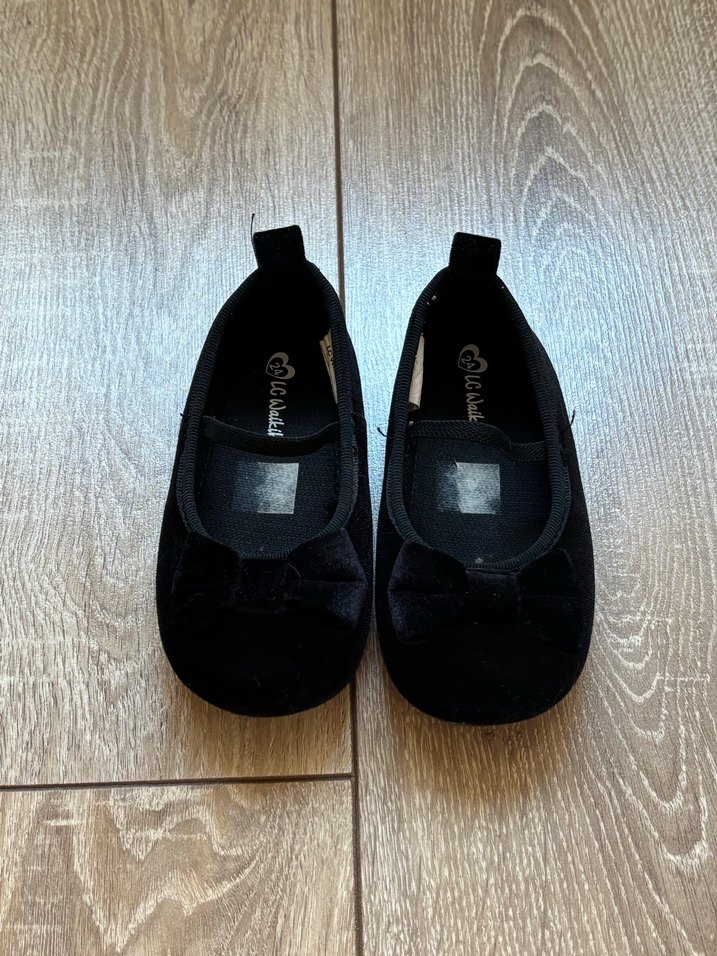 Siyah kadife fiyonklu babet, 24 numara. Çoğunlukla evde giyildi, temiz durumda.