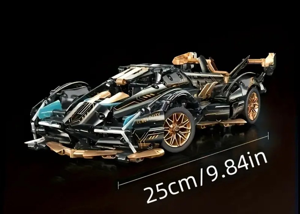 25 cm uzunluğunda siyah Lego (orijinal lego değil, moc diye geçiyor) yarış arabası modeli, altın detaylar ve gerçekçi tekerleklerle detaylı tasarıma sahip. ️hiçbir kusuru yok. Yurtdışından ithal