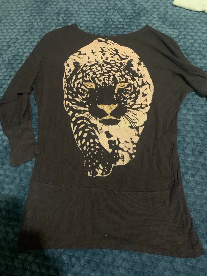 uzun kollu ve yuvarlak yakalıdır. Leopar baskı, rahat sentetik kumaştan yapılmıştır. Günlük kullanıma uygundur.