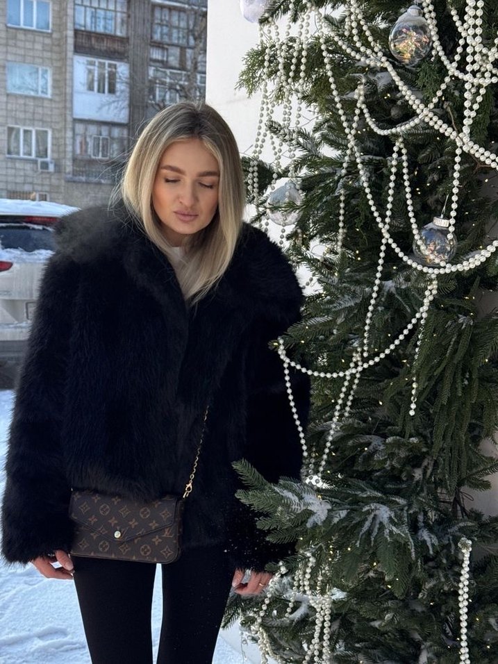 Siyah leopar desenli, yüksek yakalı ve uzun kollu, kısa kesim, fitted modeli sahte kürk mont. Rahat ve sıcak fleece astarlı, günlük kullanıma uygun.