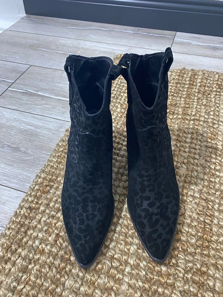 Siyah leopar Desenli Süet Dolgu Topuk Bot