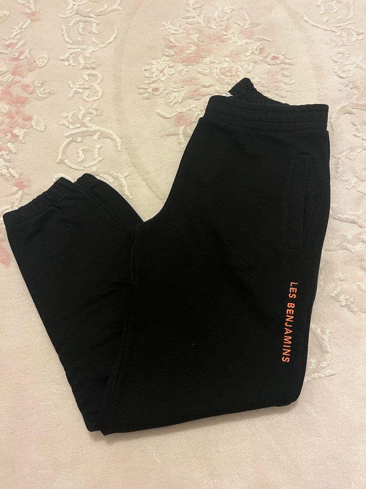 Les Benjamins marka, siyah renk, bol kesim ve normal boy kadın sweatpant. Yumuşak ve sıcak kumaştan, yan cepler ve sade marka detayıyla rahat ve şık kullanım sağlar.