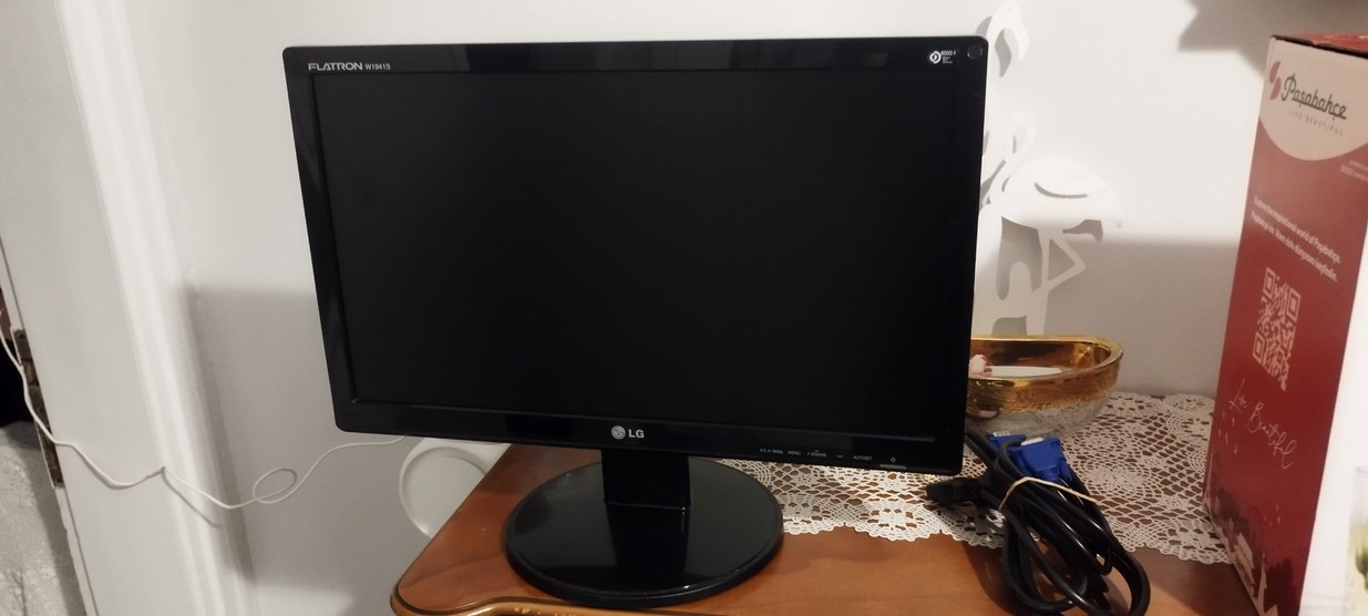 Siyah renkli, yuvarlak tabanlı LG monitör, şık tasarıma sahip. ️