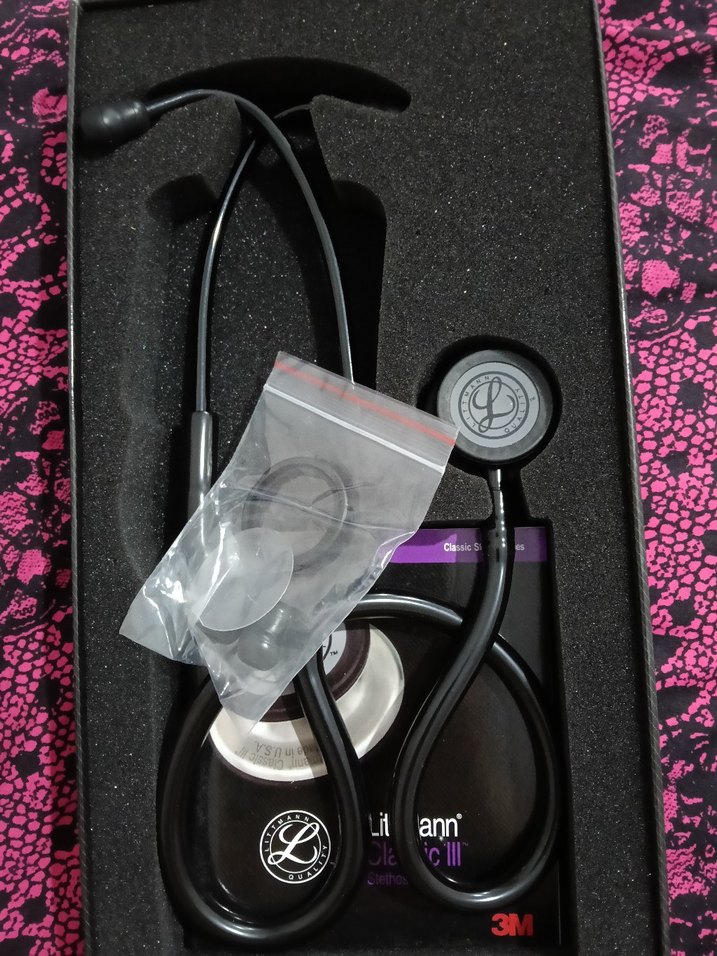 hiç kullanılmadı siyah renkli Littmann Classic III steteskop, yumuşak kulaklık uçları ve dayanıklı göğüs parçası ile net ses sağlar. Ekstra kulaklık uçları pakete dahildir.