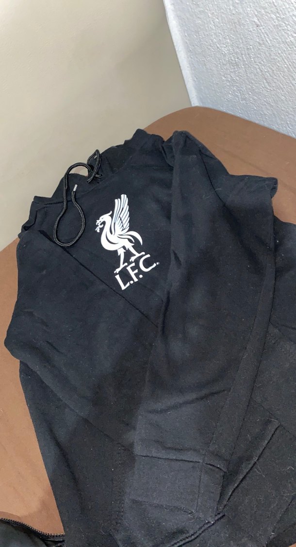 Siyah, uzun kollu, kruvaze yaka ve Liverpool baskılı, fermuarlı, yumuşak ve sıcak kumaştan üretilmiş fitted sweatshirt. Günlük kullanım için uygundur.