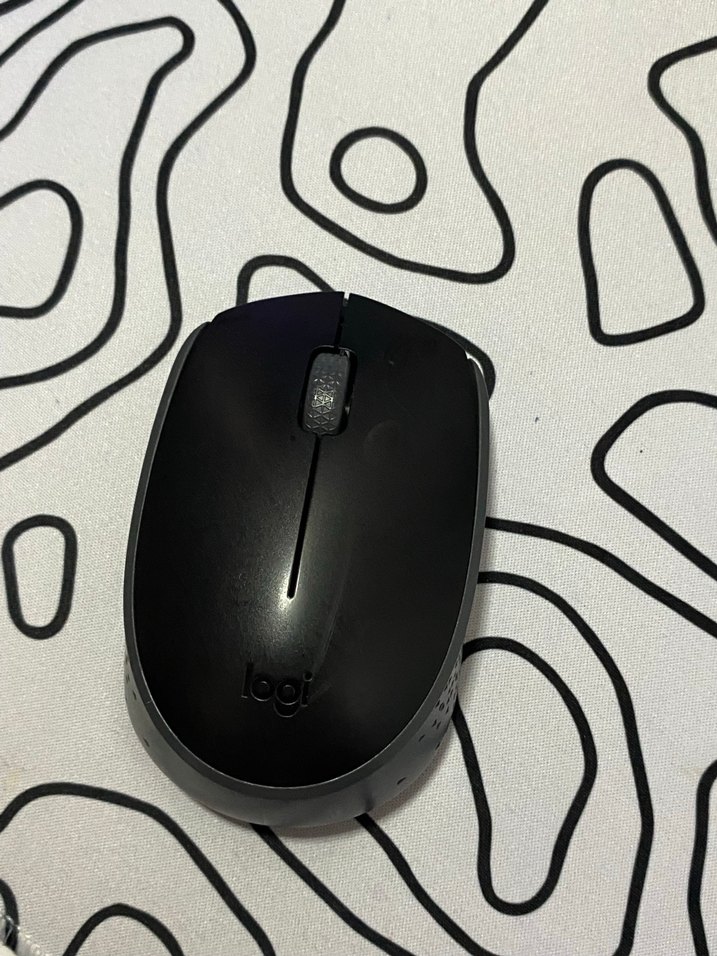 Kompakt tasarımlı, kaydırma tekerlekli siyah Logitech kablosuz mouse. Günlük kullanım için uygun. ️ Sadece üstünde çok ufak bir lekelesi var