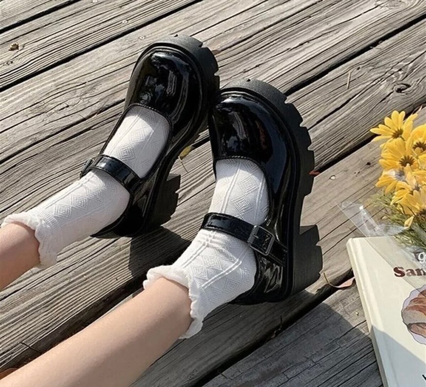 Siyah lolita mary jane Platform Topuklu Kadın Ayakkabı