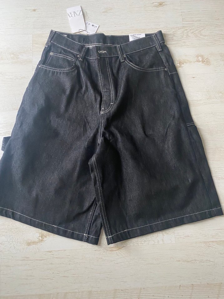 Siyah loose fit denim şort, rahat ve şık sokak tarzı. Günlük kullanıma uygun, konforlu kesimle rahatlık sağlar.