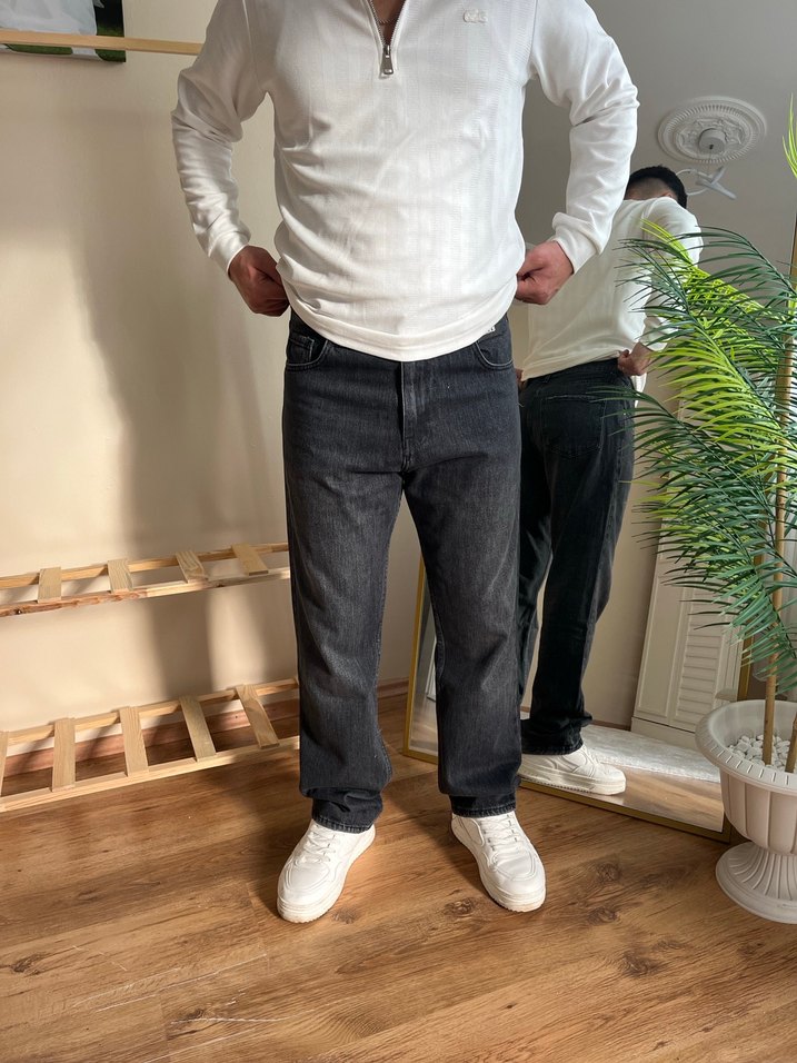 Siyah renkli, loose fit kesim ve normal boyda denim pantolon. Trendy casual tarz için rahat ve şık bir tercih. Günlük kullanıma uygun.