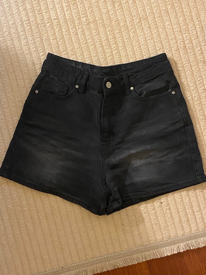 • Siyah loose fit mini denim şort, günlük kullanım için rahat ve deseniz. Sokak modasına uygun, zahmetsiz şıklık sunar.