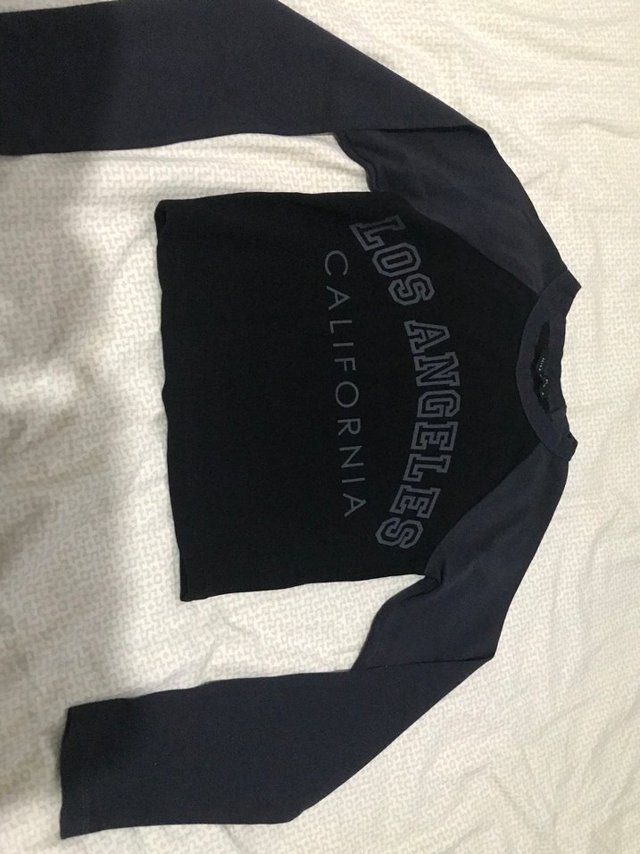 Siyah, dar kesim ve uzun kollu crop body, bisiklet yaka ve 'Los Angeles California' baskılı. Pamuklu kumaştan yapılmıştır. Hiç kullanılmadı.