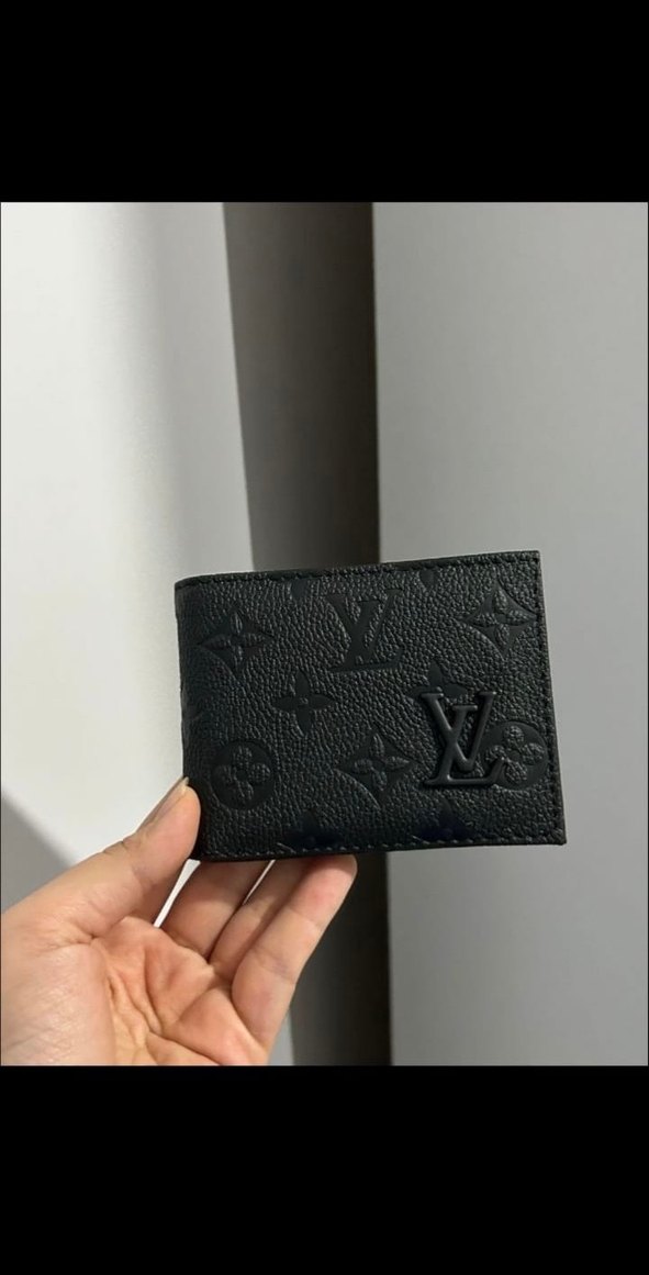 Bu siyah Louis Vuitton erkek cüzdanı, dokulu baskılı desenli olup, trend sokak stili için uygundur.