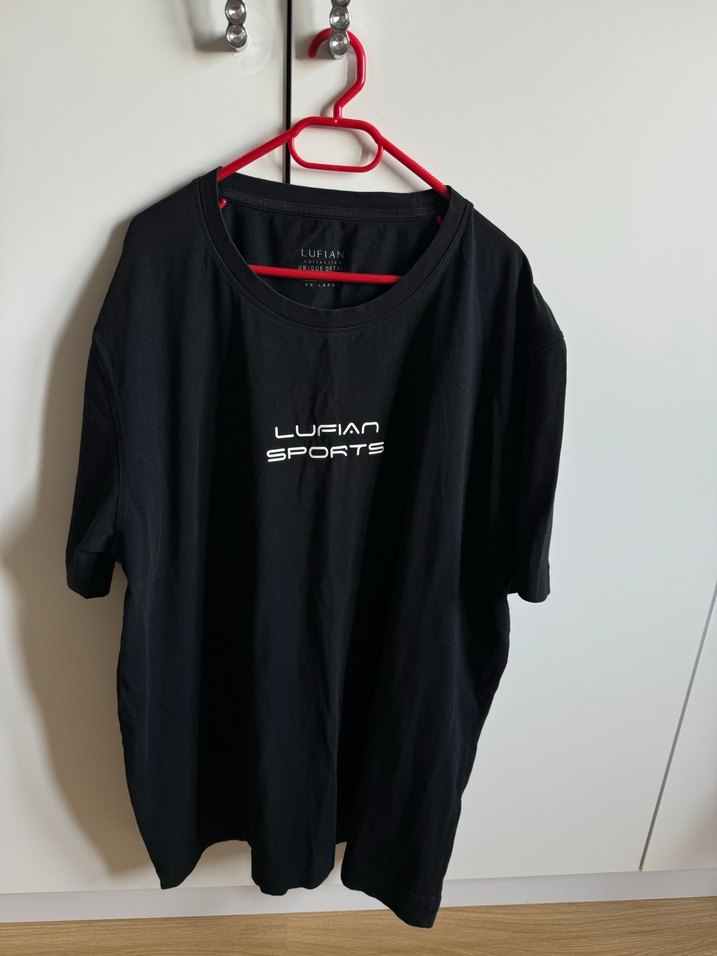 Siyah renkli, Lufian marka spor baskılı tişört, kısa kollu ve yuvarlak yakalıdır. Rahat kesimi ve yumuşak sentetik kumaşıyla spor ve gündelik tarz için uygundur.