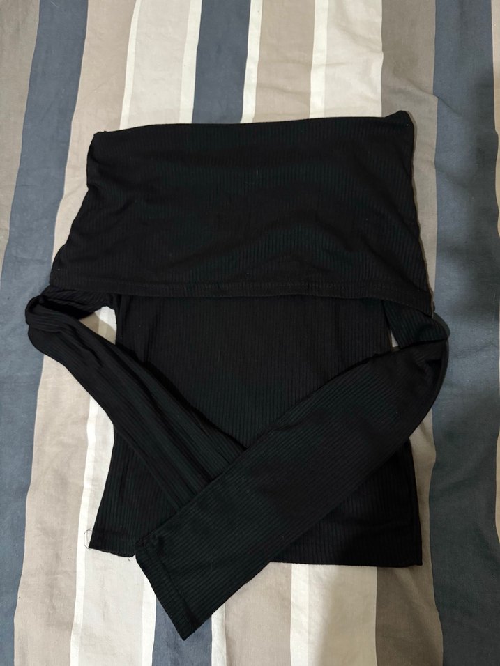 Siyah Madonna Yaka Uzun Kollu Kadın Bluz