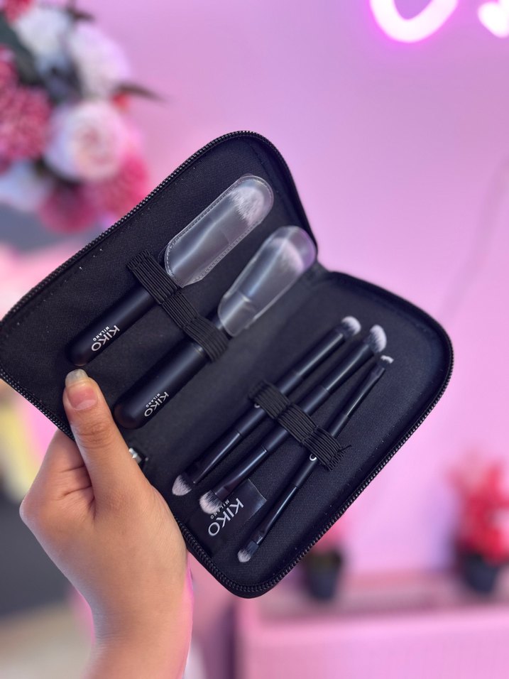 Siyah makyaj fırçaları çeşitli boyutlarda ve taşıma çantasıyla birlikte gelir. Hassas uygulama için uygundur.