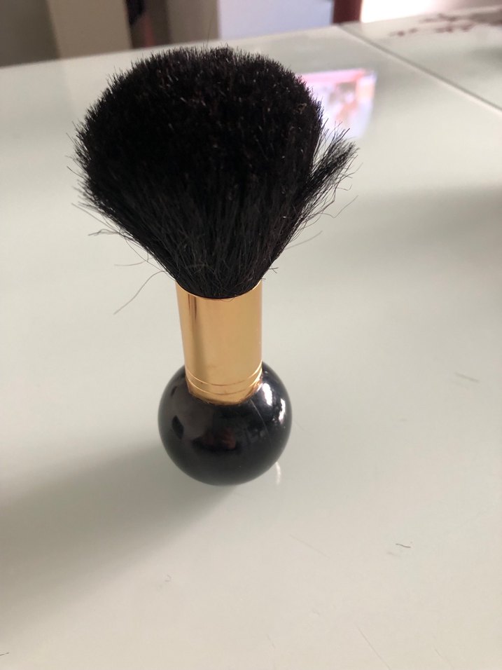 Siyah saplı, altın metal tutucu ve yoğun yumuşak kıllara sahip makyaj fırçası. ️