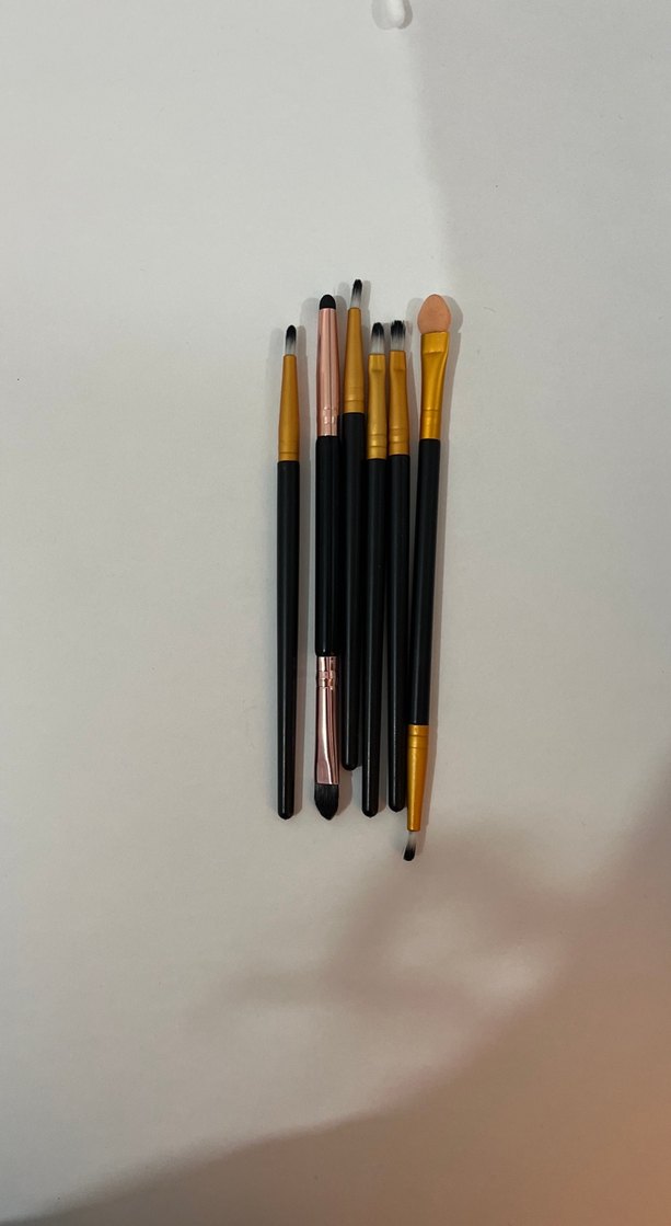 Farklı başlıklara sahip siyah makyaj fırçalarından oluşan set. Saplar altın ve rose altın detaylıdır.