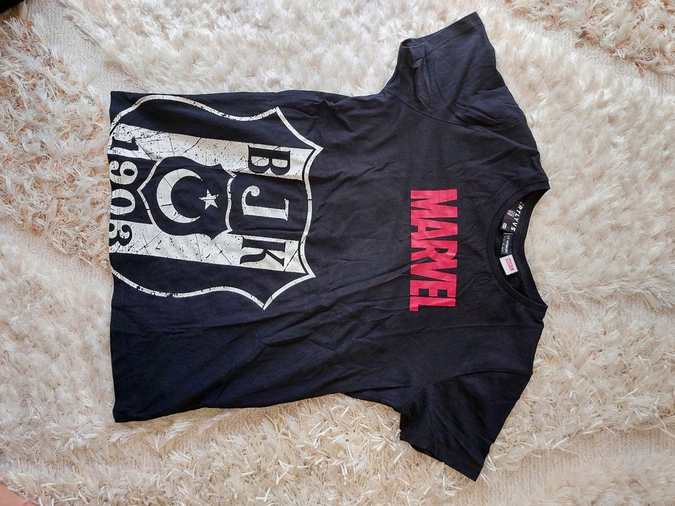 Siyah Marvel Baskılı BJK Tişörtü 12 13 yaş