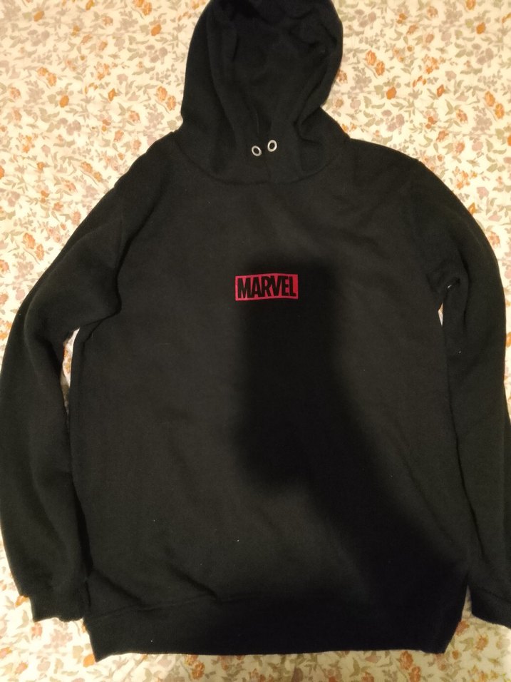 Hiç bir kusuru yoktur.Siyah kapüşonlu sweatshirt, uzun kollu ve bol kesim. Örgü detaylı, önünde Marvel baskısı bulunur. Rahat ve günlük kullanım için uygun.
