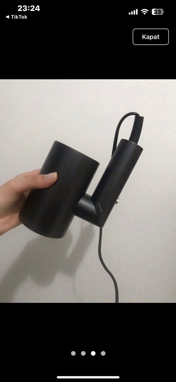 Mat siyah renkte, kompakt ve modern tasarımlı kolay tutulan saç kurutma makinesi.