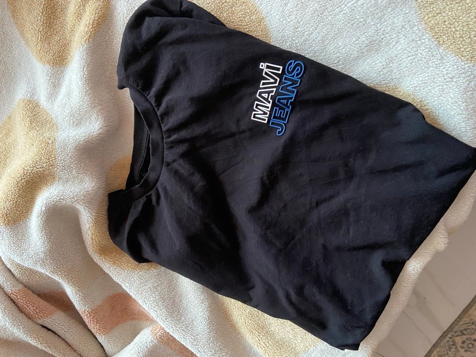 Kısa kollu, yuvarlak yakalı Sıyah mavi tişört