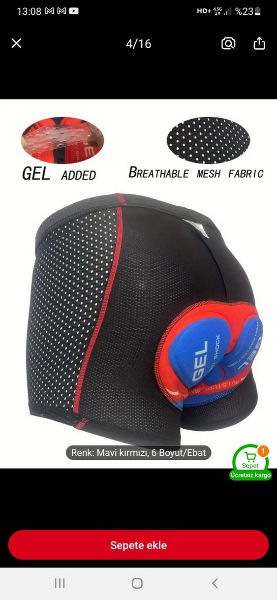 Siyah Mavi-Kırmızı jel yastikli bisiklet şortu