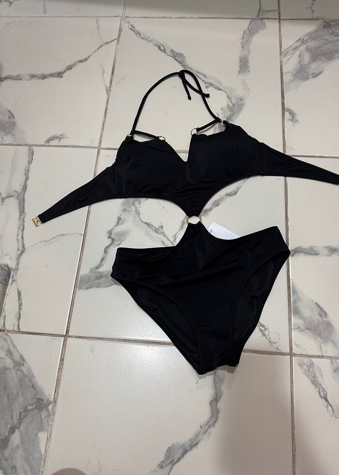 Siyah mayokini, hiç giyilmedi, etiketli şahane bir ürün. Etiketinde L beden yazıyor fakat M beden için daha uygun
