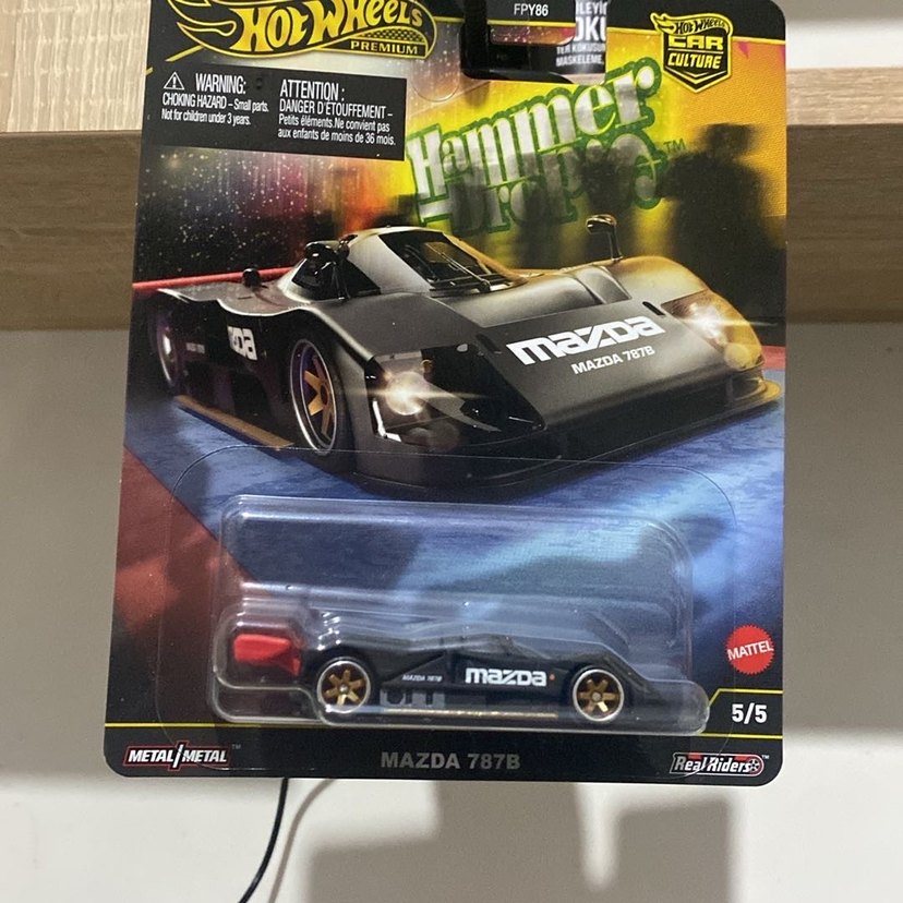 Siyah renkli Mazda 787B oyuncak araba, metal yapısı ve detaylı tasarımıyla Hot Wheels Premium serisine ait. Koleksiyonluk ve hareketli tekerlekli bir modeldir.
