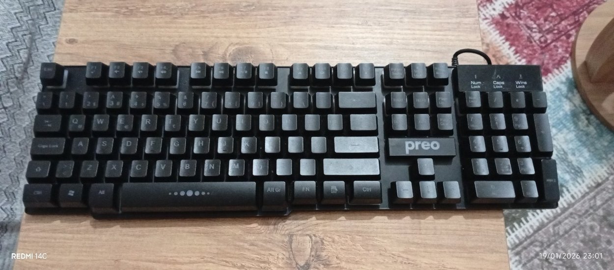 Kompakt tasarımlı, siyah mekanik klavye. Verimli yazım için koyu renk tuşlara sahiptir. ⌨️