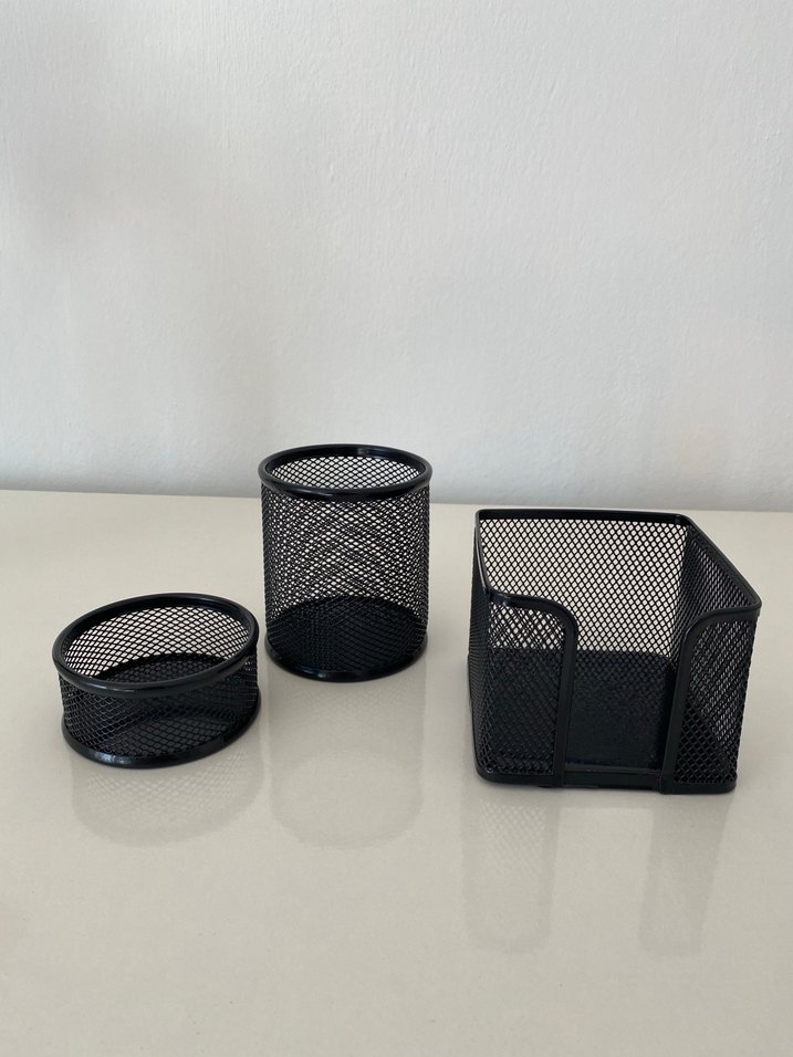Siyah metal 3'lü Masa Seti kalemlik kağıtlık