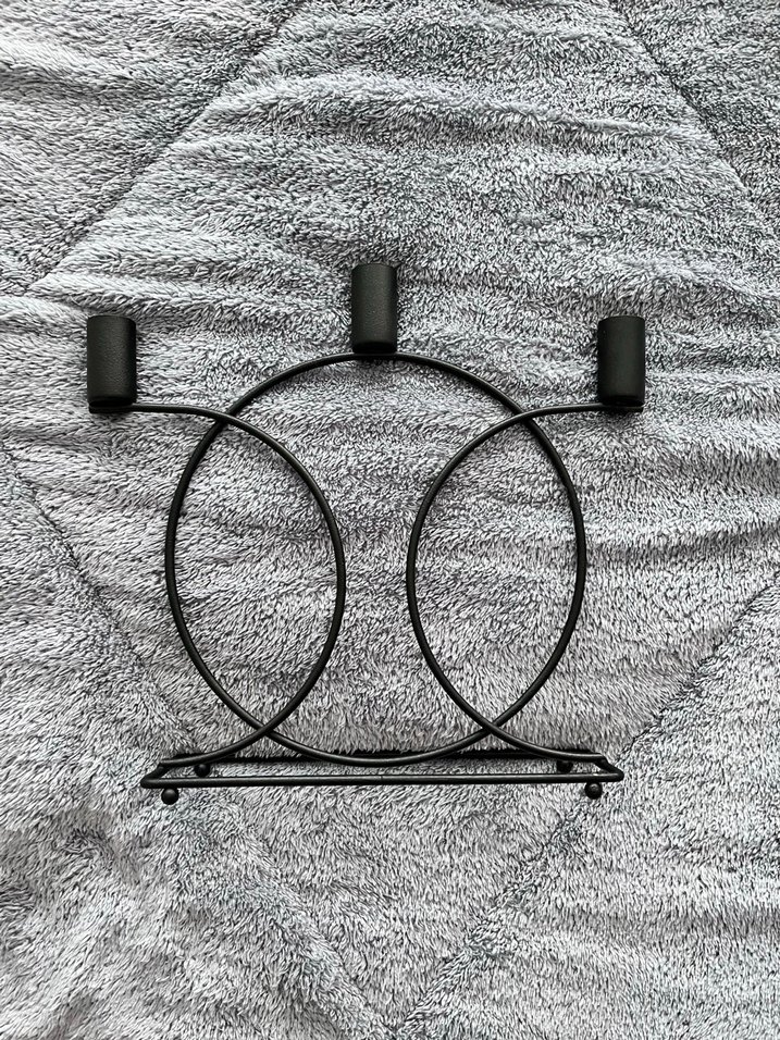 Siyah metalden yapılmış, dairesel tasarımlı 3'lü mumluk. Dekoratif mumlar için uygundur. ️