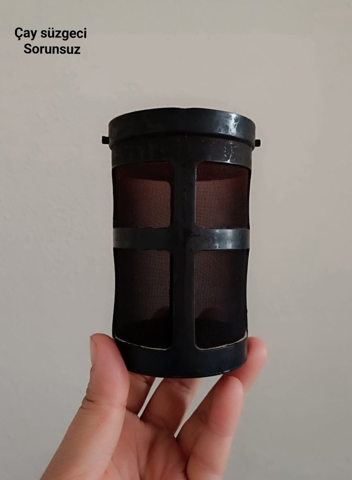 Siyah metal malzemeden üretilmiş, sorunsuz çay süzgeci. Dayanıklı ve kullanışlıdır.