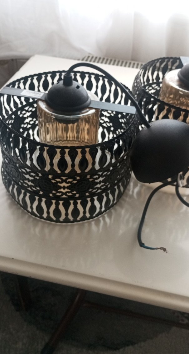 Siyah Metal Desenli Avize Abajur