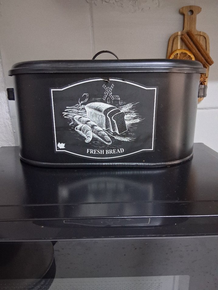 Üzerinde "FRESH BREAD" yazısı ve ekmek çizimleri bulunan siyah metal ekmek kutusudur. Üstünde açma kulpu mevcuttur.