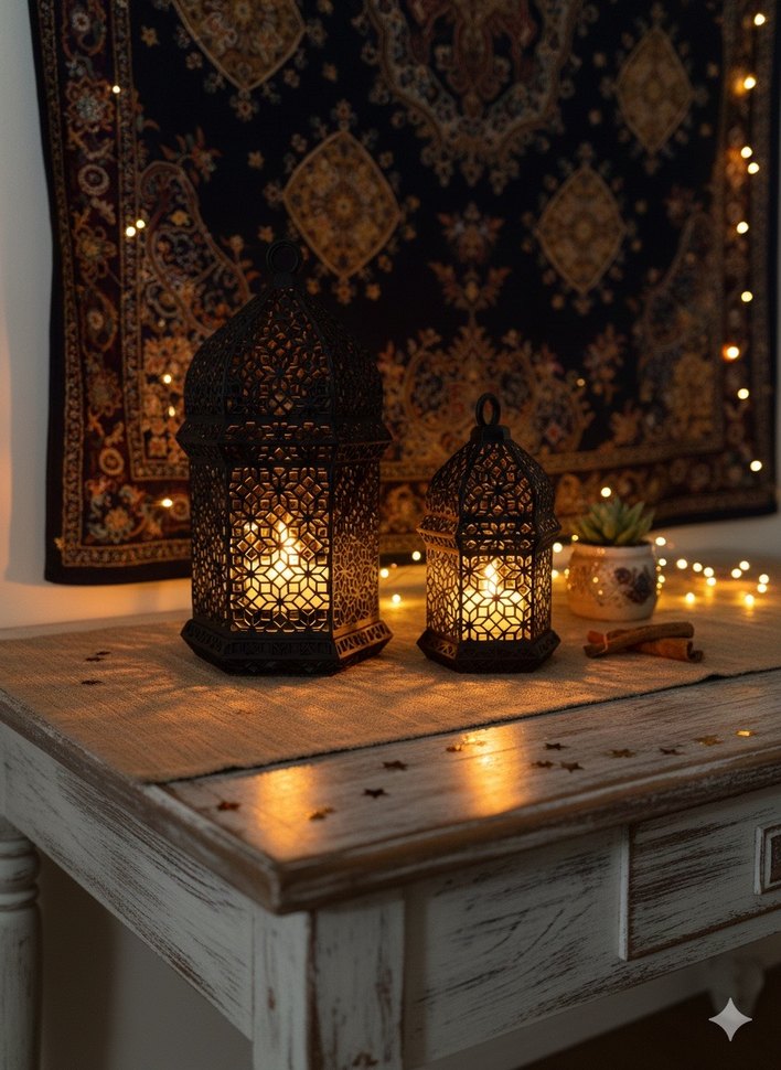 İnce desenlere sahip siyah metal fener mumluklar, sıcak ve samimi bir atmosfer yaratır. Dekoratif aydınlatma için uygundur. ️