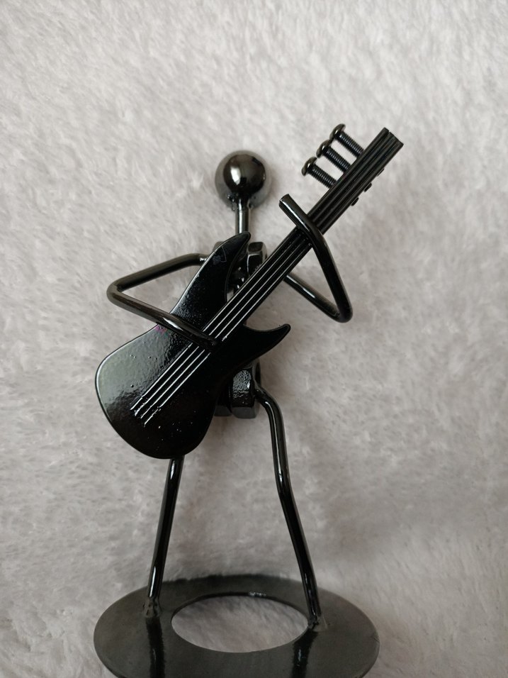 Minimalist tarzda, elektrik gitar çalan siyah metal figür. yurtdışından alınmıştır