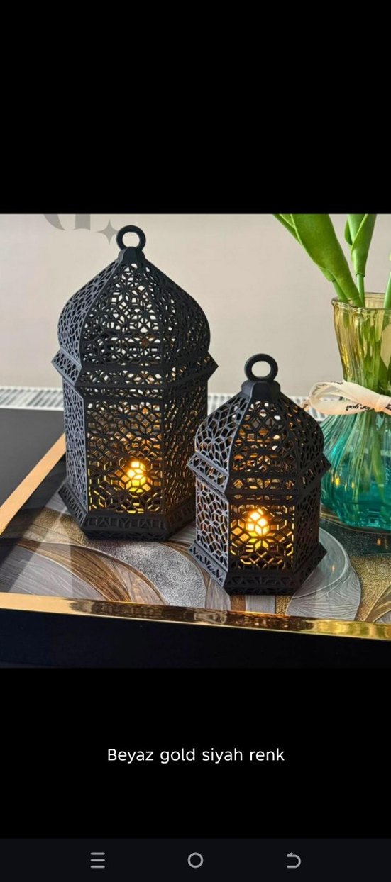 İki farklı boyda, siyah metal işlemeli mumluk seti. İçlerinde yanan mumlarla sıcak ve dekoratif bir atmosfer sağlar. ️