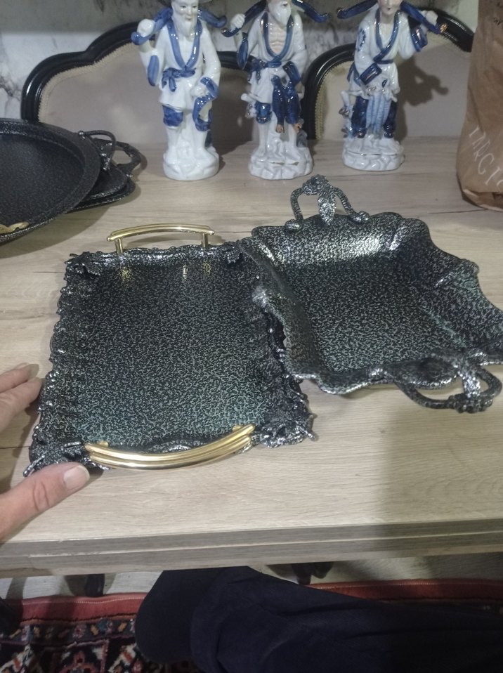 Siyah Metal Kulplu Dekoratif Tepsi Seti