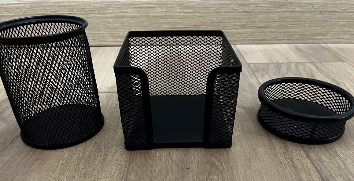 siyah metal tel masa üstü düzenleyici Dayanıklı ve pratik , üç parça ( kalemlik - notluk - ataçlık ) masa üstü gereçlerini düzenlemek için ideal.