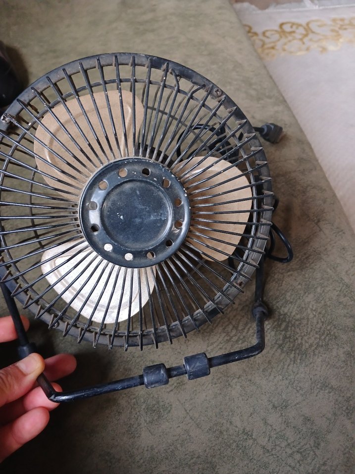 Yuvarlak koruyucu ızgaralı ve üç kanatlı siyah metal masaüstü vantilatör, kişisel serinlik için uygundur. Kompakt tasarımlı ve sabit durabilen ayaklıdır. araç ve PC uyumlu