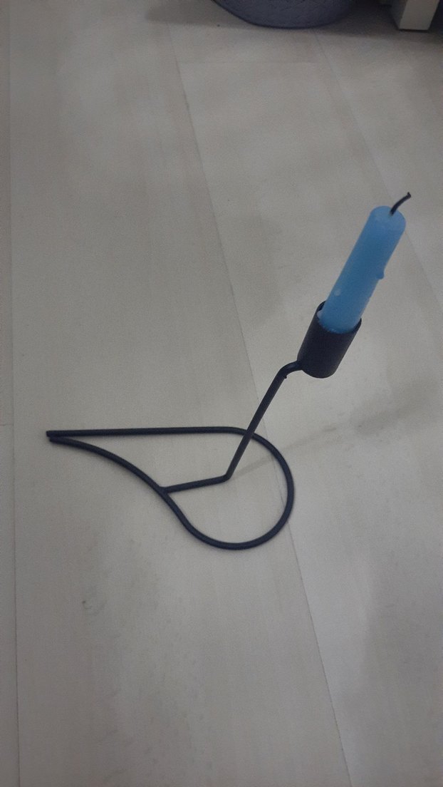 siyah metal mumlukta, minimalist tasarımlı dairesel taban ve ince kollu.