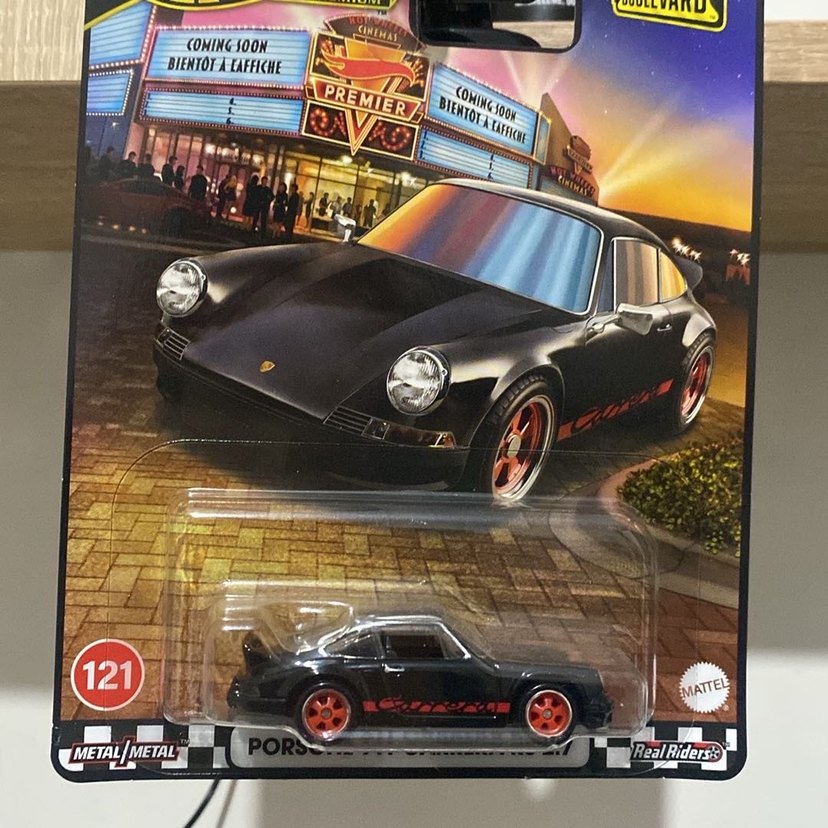 Siyah renkli metal Porsche oyuncak araba, kırmızı jantlara ve RealRider lastiklere sahiptir. Detaylı tasarımı ile gerçekçi görünüm sunar.