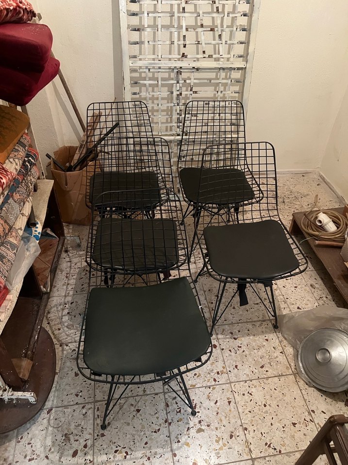 Siyah Metal Tel Sandalyeler Seti